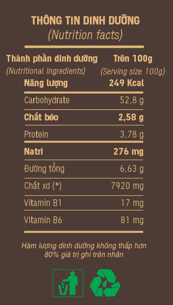 Thông tin dinh dưỡng Bánh mỳ Sanwich Nguyên Cám 300 G