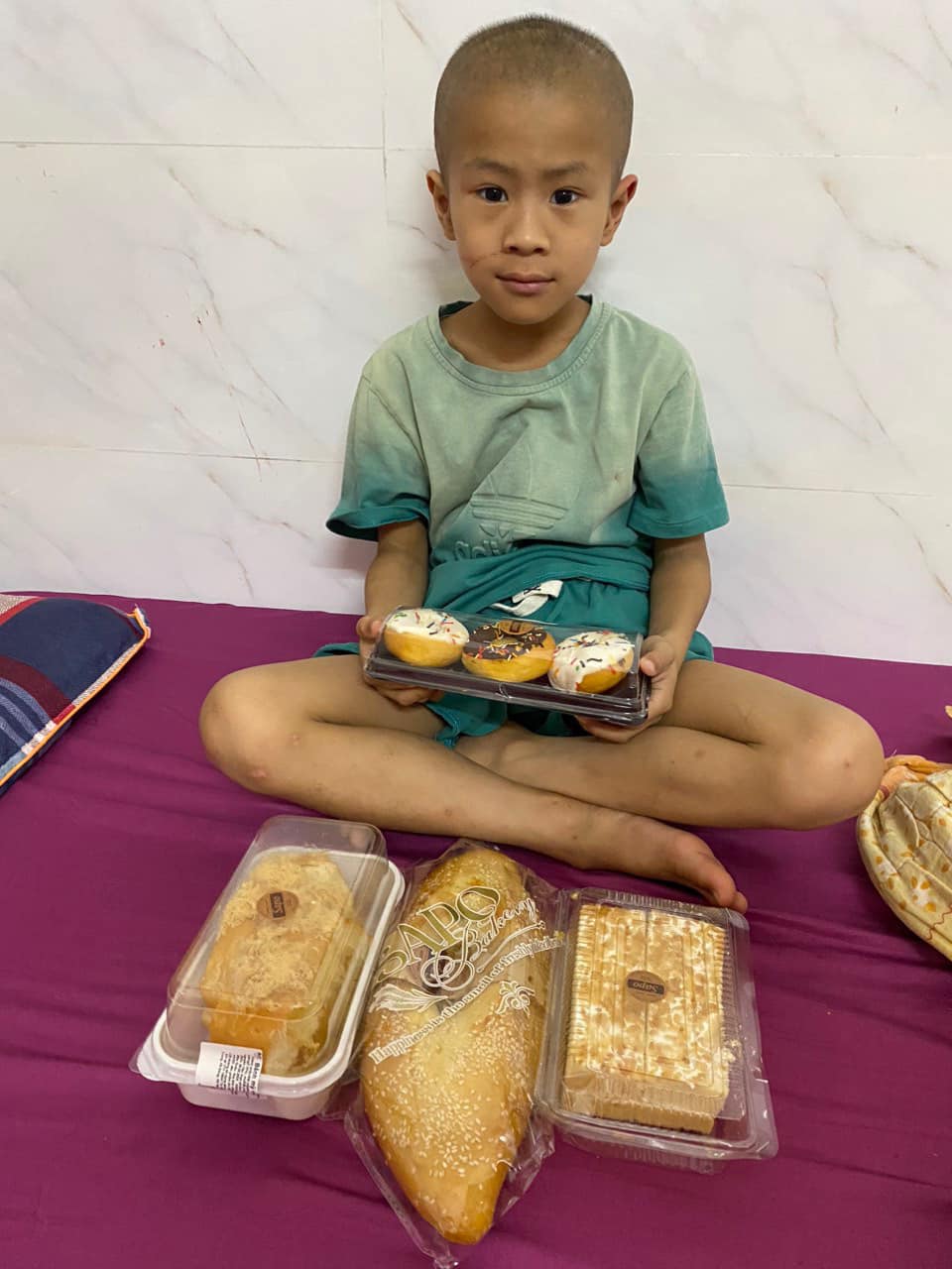 (80 em nhỏ đang điều trị tại Bệnh Viện K Tân Triều được nhận quà từ thương hiệu Sapo Bakery)